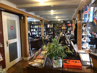 Spesialiteter: Kaffihús, Bókaverslun.